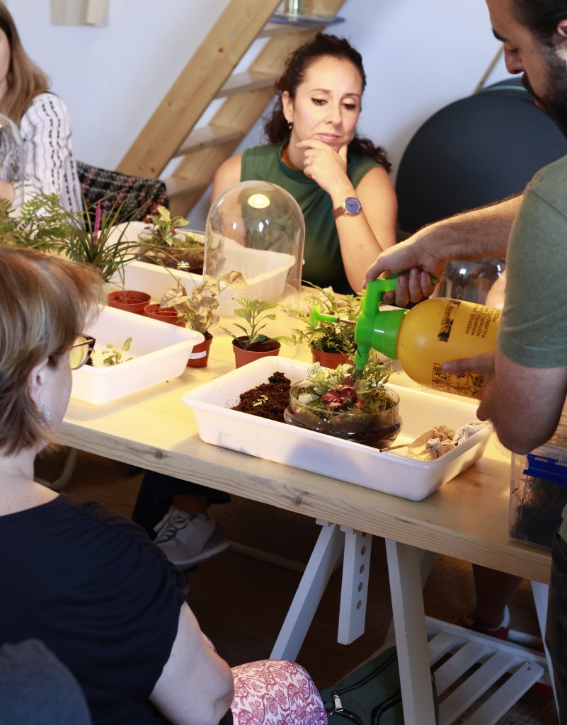 El pasado 19 de octubre, el equipo de El Terrarista, el de Tejemaneje y 12 asistentes disfrutamos, juntos, de una mañana espectacular, aprendiendo a hacer terrarios y poniendo los conocimientos en práctica de forma relajada y en un ambiente hogareño y familiar.