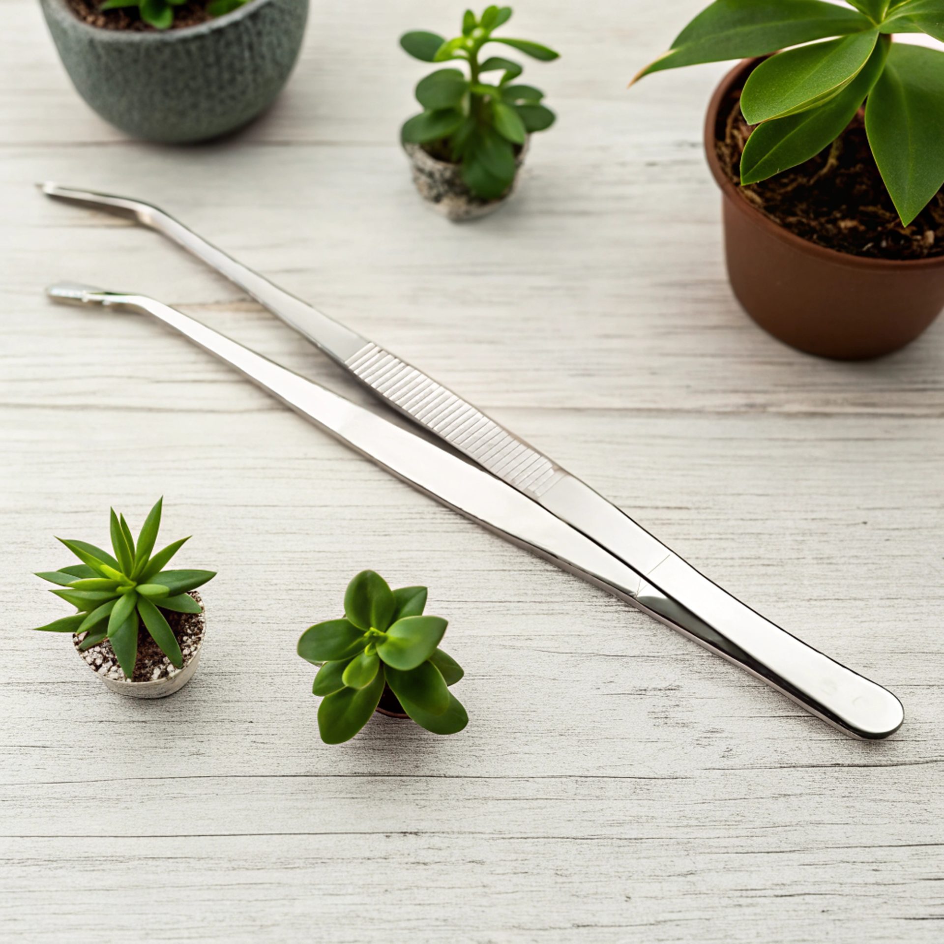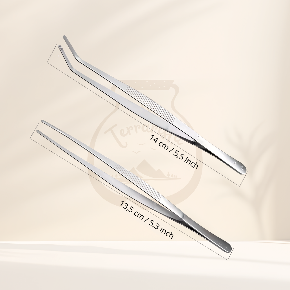Una de las herramientas esenciales para el terrarista son las pinzas curvas diseñadas para ofrecer máxima precisión en espacios reducidos. Estas pinzas destacan por: