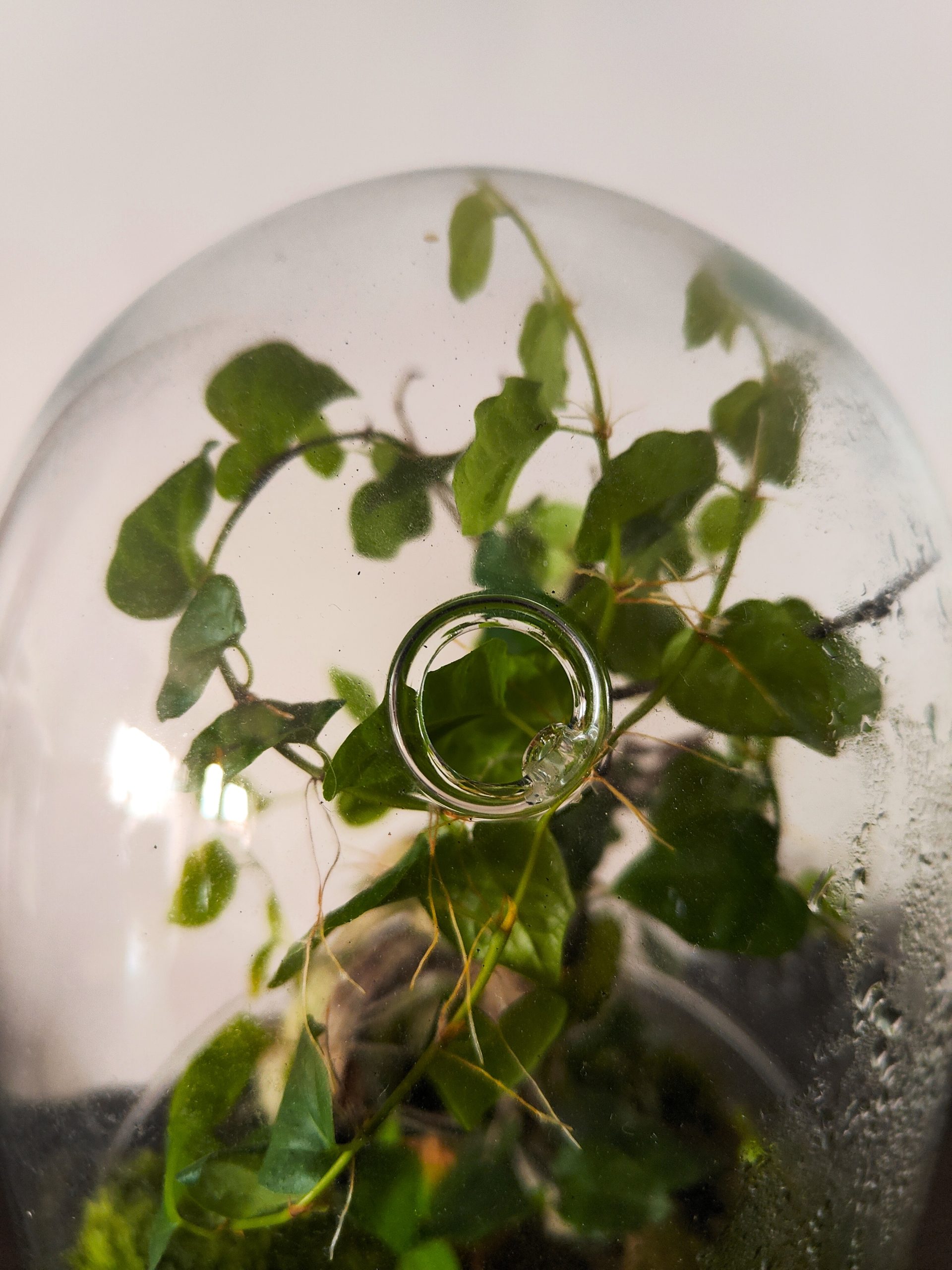Abre solo para regar: Como todos los ecosistemas, tu terrario necesita estabilidad. Cada vez que abres la tapa, se escapa vapor de agua y temperatura del recipiente.